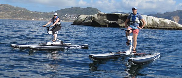 The Schiller Bikes water bike is a revolutionary carbon and aluminum water bike. Thanks to its incredible design, it has great buoyancy with very little water resistance. In this way, the water bike is propelled forward by a propeller similar to that of a boat, reaching speeds of up to 10 km / h.