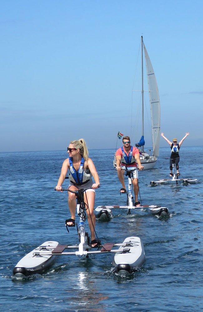 You will live an experience similar to stationary bikes but in an incomparable setting: the Mediterranean Sea.